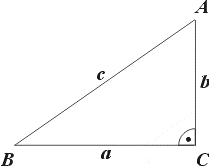 Пусть длины сторон прямоугольного треугольника ABC (рис.2) обозначены через a, b, c, причём сторона длины c находится напротив прямого угла. Теорема Пифагора утверждает справедливость равенства