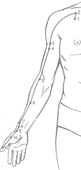 ридиана легких от 3 до 5 ч. На меридиане легких 11 точек.