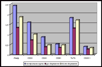 Рис. 2. Динаміка імунограми у пацієнтів з гіпоергічною реакцією імунної відповіді