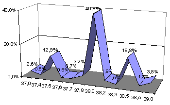 Что касается значения температуры, начиная с которого респонденты считают необходимым ее «сбивать», наиболее часто встречающийся ответ — 38.0° (диагр. 4).