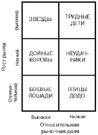 С помощью данных матриц руководители решают вопросы определения направлений предпочтительного инвестирования с целью завоевания большей рыночной доли, а может быть — снятия с производства какого-то продукта.