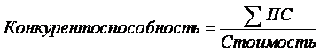 ПС – сумма потребительских свойств продукта (услуги), представляющих ценность для потребителя;