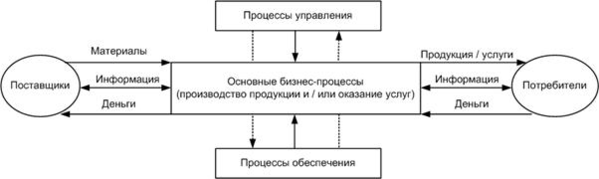 Операционная система компании активно взаимодействует с внешней средой: от поставщиков в компанию идут материалы и информация, на основе которых изготавливается продукция или предоставляются услуги. Продукция и услуги поступают к потребителям, с которыми компания также активно обменивается информацией. Компания оплачивает материалы поставщикам, а потребители, в свою очередь, оплачивают продукцию и услуги компании. Все эти взаимодействия рождают материальные информационные и финансовые потоки, от эффективности организации которых зависит успешность компании.