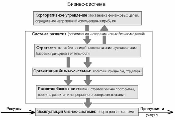 Самый нижний уровень «Эксплуатация бизнес-системы», - текущая операционная система компании, которая является следствием принятых на верхних уровнях решений (рис.1).