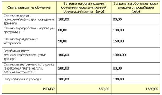 Доцільне в даній ситуації скласти кошторис витрат на навчання персоналу і зіставити витрати.
