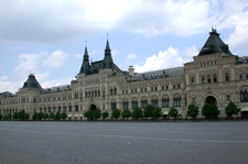 В свою очередь, при Екатерине же перестроены были и ряды, выходившие фасадом на Красную площадь. Эта грандиозная постройка сильно пострадала от пожара 1812 года, а после него, в 1815 году, заново была переделана по проекту известного архитектора О.И. Бове. Эти ряды в стиле Empire просуществовали до 80-хъ годов прошлого века, постепенно ветшая и разрушаясь. Наконец, они были закрыты по приказанию администрации, а затем из владельцев торговых помещений составилось акционерное общество для постройки новых рядов, которые должны были отвечать современным условиям торговли. На постройку собран был строительный капитал в 5 милл. руб., земля под зданием оценена была в 9,5 милл. Ряды открыты были в 1894 году. Они представляют собой выдающееся сооружение среди торговых помещений не только России, но и Западной Европы.