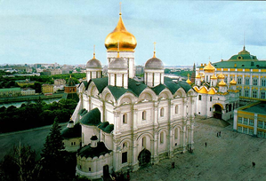 «В южной — «княжеской» — части Соборной площади, напротив Благовещенского собора возвышается Архангельск собор, бывший до конца. ХVIII века усыпальницей великих князей и царей.