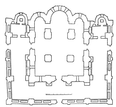 Около восточных углов существовали два небольших придела. Храм окружала галерея, одновременная с основным объемом.