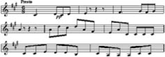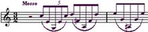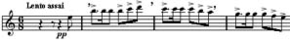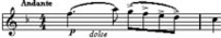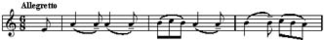 Певучее detache, элементы которого можно заметить в вышеприведенном музыкальном отрывке (как бы detache целыми нотами), требуется в тех случаях, когда мелодия отличается кантабельностью.