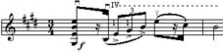 В Концерте Б.Бартока (пример 4) разделительная артикуляция сменой смычка происходит на стыке двух аккодов: