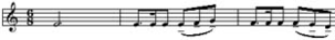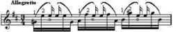Нетрудно заметить, что указанные лиги не имеют никакого отношения к фразировочным лигам и приведенный мелодический отрывок состоит не из четырех фраз, а одной. Равномерное распределение целого смычка применимо здесь для выявления спокойного, повествовательного характера мелодии.