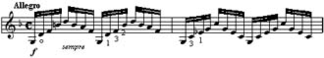 Прекрасный пример мягкого staccato мы находим у Н.Паганини в его Каприсе ? 13 (пример 20):
