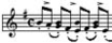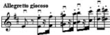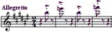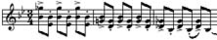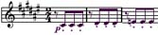 Пример 45.е - Ямбическая пара. Пауза между слабой и сильной нотами, которая придает такому виду артикуляции своеобразный колорит, выполняет две функции: разделяет ноты внутри пары и способствует форсированной атаке второй ноты пары. Причем пауза между парами почти отсутствует. В музыкальной практике этот прием называется штрих Виотти (пример 50):