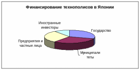 Японцы первыми увидели в технополисах модель будущего общества и поставили его формирование на рельсы государственного планирования. Это не означает, что строительство технополисов финансируется только государством. Нет, типичные источники финансирования технополисов в Японии таковы: 30% - государственное финансирование, 30% - муниципалитеты, 30% - предприятия и частные лица, 10% - иностранные инвесторы4 (рисунок 3).