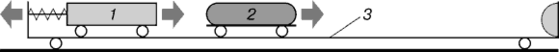1 – малая тележка; 2 – кусок пластилина; 3 – большая тележка.