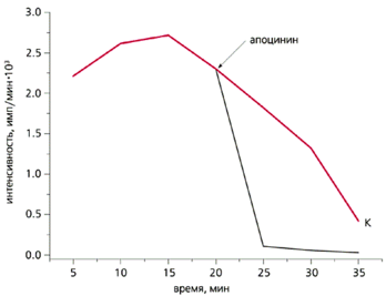Влияние апоцинина (25 мкМ) на хемилюминесценцию губки Sycon sp.