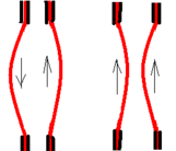 При однонаправленном движении токов (электронов) проводники притягиваются, а при встречных движениях токов (электронов) проводники отталкиваются.