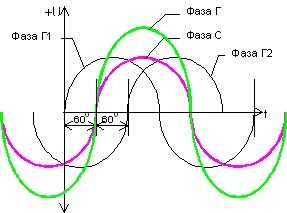 Временная диаграмма напряжений на обмотках двигателя-генератора и напряжения генератора показана на Рис 6.