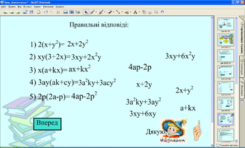 Для зручного переходу на наступний слайд ми створили за допомогою гіперпосилання на іншу сторінку клавішу «Вперед», яка дозволяє швидко перейти до наступного завдання.