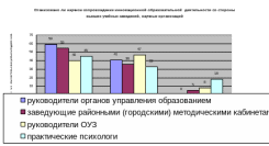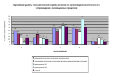 Психологическое сопровождение инновационных процессов, как необходимое условие их реализации на должном уровне, не обеспечено вследствие недостатка кадров. Обеспеченность общеобразовательных учебных заведений автономии практическими психологами в настоящее время составляет 54,5%. Оценка работы региональных психологических служб по организации психологического сопровождения инновационных процессов отражена в диаграмме 3.