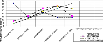 | Показатели уровня обученности школьников | параметры | При анализе взяты стартовые показатели классов и учащихся с равными степенями обученности по состоянию на начало исследований. |