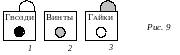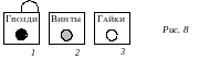 Откроем коробку 1. Допустим, там оказались гайки (рис. 8; а могли быть и винты: рассуждения проводились бы аналогично).