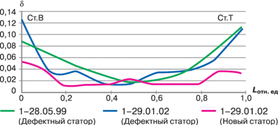 Комплексный подход к обследованию турбогенераторов позволяет с практически достаточной достоверностью выявить узел с наименьшим ресурсом работоспособности.