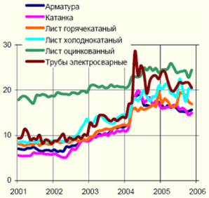 Исключительный рост цен на стальную продукцию в последние годы свидетельствует о резком росте спроса на нее со стороны развивающихся стран, в первую очередь Китая