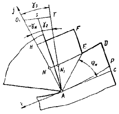 Передний угол в нормальной секущей плоскости (рис. 2) определяется из выражение