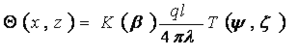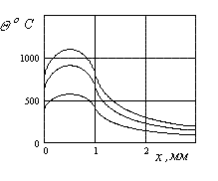 Безразмерное распределение температур на передней поверхности кромки инструмента в перпендикулярном сечении к главной режущей кромке определено, как указано ниже (z = 0):