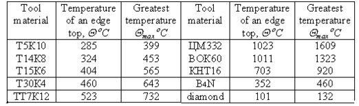 Таблица 1. Температура передней поверхности кромки резцовиз различных инструментальных материалов