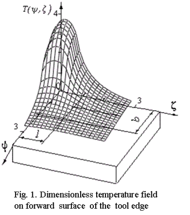 Температура - один из главных параметров процесса резания. Это определяет как эксплуатационную надежность режущего инструмента, так и качество обрабатываемых поверхностей деталей. Сейчас наряду с экспериментальными методами исследований, важность теоретических методов существенно увеличивается. Они, позволяют не только, прогнозировать уровень температур на поверхностях контактирующих тел, но также определить температурные поля внутри. Эксплуатационная надежность режущего инструмента значительно определяется температурой резания. При исследовании законов процесса изнашивания лезвия инструмента скорее важно знать не только среднюю температуру на его площадках контакта, но также значение температур в каждой точке кромки. В настоящей работе исследования законов распределения температур на передней поверхности кромки осуществляются в зависимости от параметров инструмента