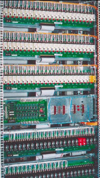 Для формирования сигналов управления, обеспечения надежной коммутации и гальванической изоляции между устройствами системы применены модули УСО фирмы Grayhill серии 73G. На рисунке 1.4 представлена задняя часть шкафа преобразователей, где хорошо видны кросс-панели с модулями УСО. Надежность электрических соединений внутри шкафа обеспечивают клеммы WАGО. По наблюдениям авторов, использование этих пружинных клемм сокращает время монтажа кроссовых соединений более чем на 40% по сравнению с традиционным винтовым способом.