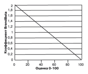 Чем сильнее бренд, тем выше его индекс значимости. brendbeta определяется по следующей формуле: 2-0,02 х балл индекса значимости товарного знака