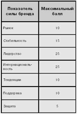 3) Третий этап (Brand Risk). Анализ бренд-риска позволяет определить норму, по которой прогнозируемый доход дисконтируется к его чистой текущей стоимости. Ставка дисконта основана на безрисковой ставке, представляющей собой доходность по государственным облигациям на прогнозный период, и на премии, определяемой на основе анализа силы бренда (Brand Strength), которую характеризуют семь специальных показателей, приведенных ниже (Таблица 5).