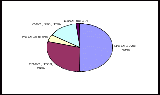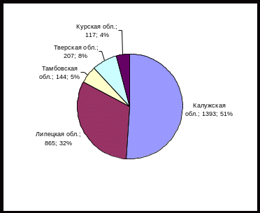 Рисунок 2 - Распределение количества прибывших граждан трудоспособного возраста по программе добровольного переселения в Российскую Федерацию соотечественников, проживающих за рубежом, по Центральному федеральному округу