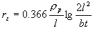 Сопротивление заземления горизонтальной полосы длиной l (м) и шириной b (м), расположенной на глубине t (м) от поверхности земли, можно подсчитать по формуле: