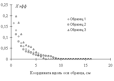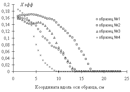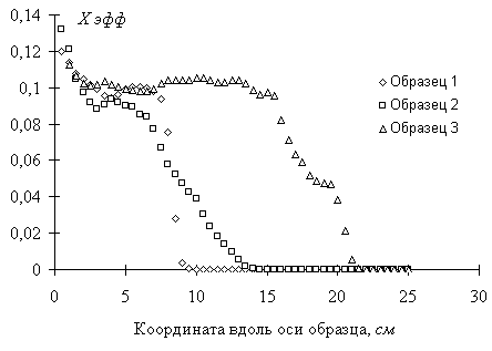 – индуктивности пустой катушки и катушки, надетой на образец, соответственно, измеренные мостовым методом. Координата катушки индуктивности относительно нижнего конца трубки измерялась по миллиметровой шкале с ошибкой не более 0,5 мм. Считая величину