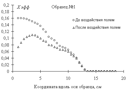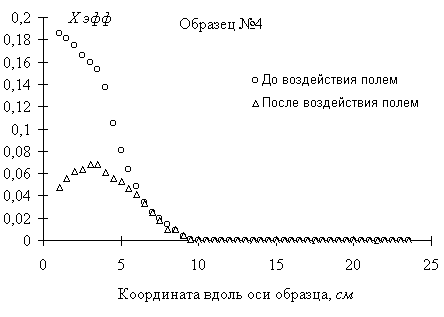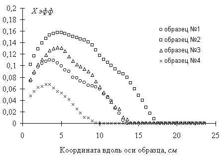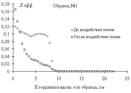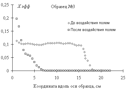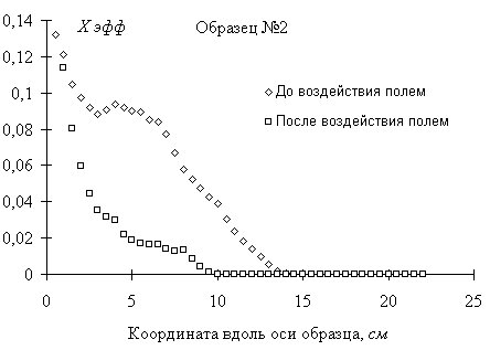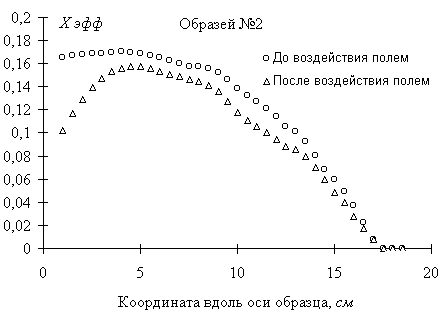 Были так же проведены исследования в отношении капилляров неправильной геометрической формы, максимально приближенной к естественной. При этом исследовалось распределение концентрации магнитной фазы вдоль оси пористого образца, как в отсутствии внешнего магнитного поля, так и после воздействия на образец неоднородным магнитным полем с известным градиентом напряжённости. В качестве образцов применялись пески с различным размером песчинок, вата и материя различной структуры, а так же деревянные прутки различной природы (бук, дуб, сосна и груша).