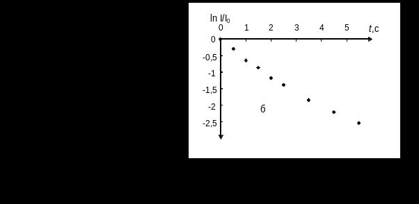 Затухание обычной фосфоресценции коронена происходит также по экспоненциальному закону со временем затухания 8,33 с, а затухание замедленной флуоресценции неэкспоненциально (рис.1б).