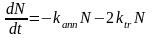 После прекращения возбуждения убыль триплетно-возбужденных пар может происходить двумя способами – как непосредственно за счет процесса триплет-триплетной аннигиляции, так и за счет внутримолекулярной дезактивации триплетного возбуждения хотя бы одной из молекул, входящих в пару. Следовательно, для скорости изменения числа пар можно записать: