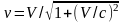 Заметим, что преобразование Лоренца легко выразить через скорость V, пользуясь тем, что кажущаяся скорость v сравнительно просто выражается через истинную (галилеевскую) скорость [8], которая отвечает классическому типу отображения.