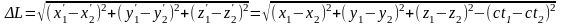 Можно ли рассматривать пространственный интервал (х1-х2) как «длину» движущегося отрезка? Конечно нельзя! Действительная длина отрезка остается неизменной. Она не зависит от выбора наблюдателем системы отсчета. Информация, передаваемая с помощью светового луча, как мы видим, искажается. Появляется отличная от нуля проекция на ось времени (ct1, ct2 ), которая в собственной системе отсчета отрезка была равна нулю. Действительная же длина отрезка инвариантна. Она определяется, приведенной выше квадратичной формой.