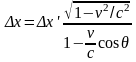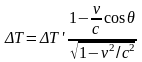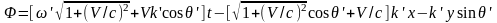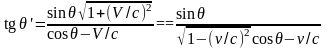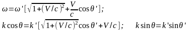 где v – скорость, входящая в преобразование Лоренца, и V – действительная скорость относительного движения инерциальных систем отсчета, входящая в модифицированное преобразование. Эта формула описывает эффект Доплера.