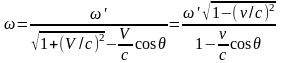 Выражая угловую частоту через не штрихованные величины, получаем выражение для наблюдаемой частоты в системе отсчета неподвижного наблюдателя