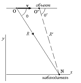 В. Аберрация. Аберрация света связана с искажением фронта световой волны, который возникает при переходе из системы отсчета, связанной с источником, к системе отсчета, связанной с движущимся относительно источника наблюдателем. Решая уравнения (2.4) и выражая угол