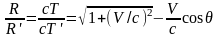 Таким образом, первый и третий варианты при малых скоростях дают одинаковый результат с точностью до членов (V/c)2.