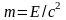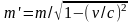 2. О релятивистской массе [8]. Так называемая релятивистская масса движущегося объекта определяется соотношением (верным и для частиц, движущихся со скоростью света):