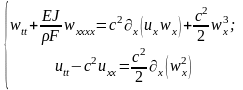 Следуя постановке задач, представленных в работах [3] и [4], рассматривается так называемая модель Бернулли-Эйлера, описывающая нелинейные колебания тонкого стержня с помощью следующих уравнений [11]