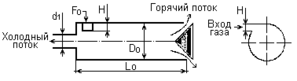 Односторонний температурный эффект наблюдается и в эффекте, открытом французским инженером-металлургом Ж. Ранком. В турбулентном смерче самопроизвольно возникает мощный ток тепла от оси к периферии: ядро потока всегда холоднее периферии. Вихревая труба Ранка (рис.15) – это тот же циклон, но реконструированный для получения максимального количества холода в осевой части вихревого потока и, соответственно, тепла - в периферийной.
